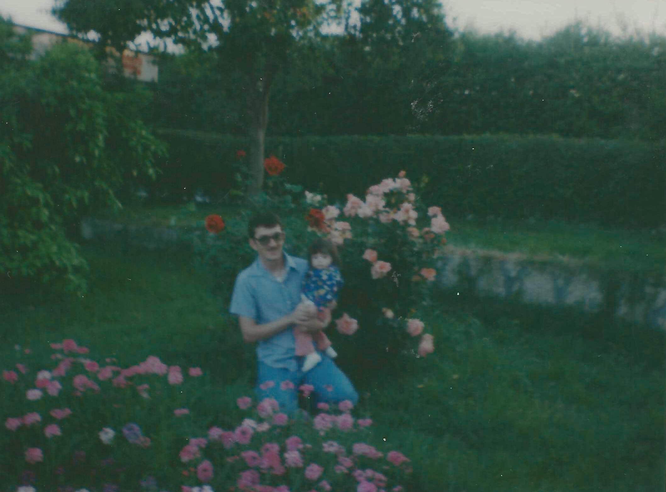 We settled into the room, several days into our stay. My wife and I were watching a monster movie on TV, a tape we rented from the base video store. I forget which one, but it was a b-monster movie of some kind. Outside the screen door, within view, the babies, one four, the other one and a half, were playing in the grass by the rose garden next to the sidewalk.