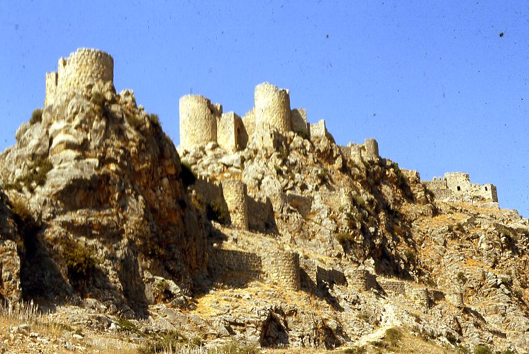 All along the road, going both ways were farm fields and Gypsies with mules and horses piled high with branches full of firewood, the occasional camel caravan, cars, trucks galore, and other various buildings as well as power and phone lines. A little further down the road was a Russian built cement plant, spewing a constant haze of line dust and just past that, Yılankale, or as it is known locally, “Snake Castle.” This is a close-up shot of the back or south side of the castle.